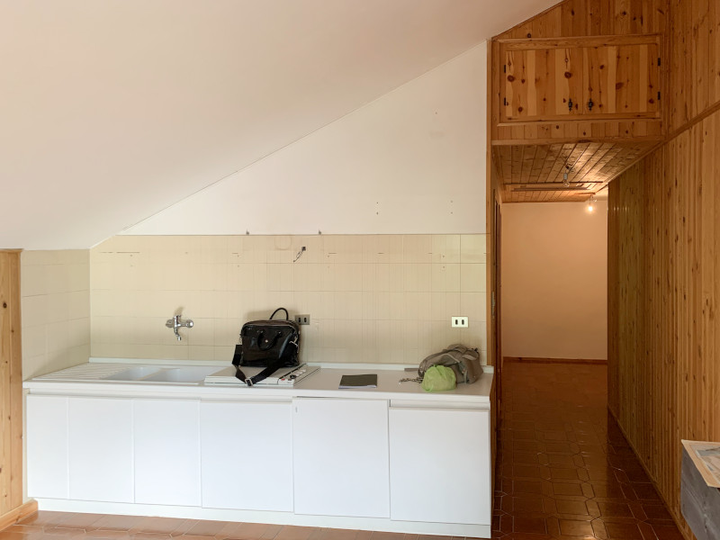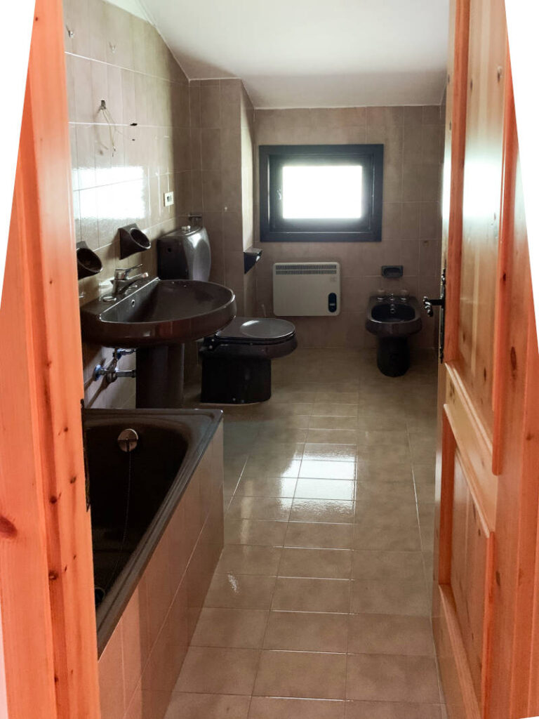 La disposizione dei locali non è stata variata: l’ingresso ospita un piccolo angolo notte con letto a castello da cui si sviluppa un breve corridoio lungo il quale sono disposti una camera matrimoniale e il bagno, per sfociare poi nella zona giorno, con in fondo il balcone che affaccia sulla valle. In sostanza si è trattato di un intervento di rinnovo, che ha comunque contemplato il rifacimento degli impianti elettrico e idraulico e la completa ristrutturazione del bagno.