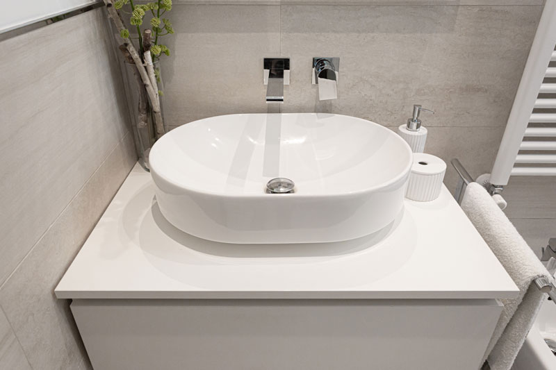 L’appartamento è inoltre caratterizzato da soffitti alti 330 cm: questo ha permesso di realizzare consistenti ribassamenti, a 220 cm nell’ingresso e a 240 cm nei bagni, allo scopo di ottenere capienti volumi contenitivi accessibili attraverso botole e sportelli a filo superficie per valigie, equipaggiamenti per attività sportive e altre dotazioni di utilizzo occasionale.