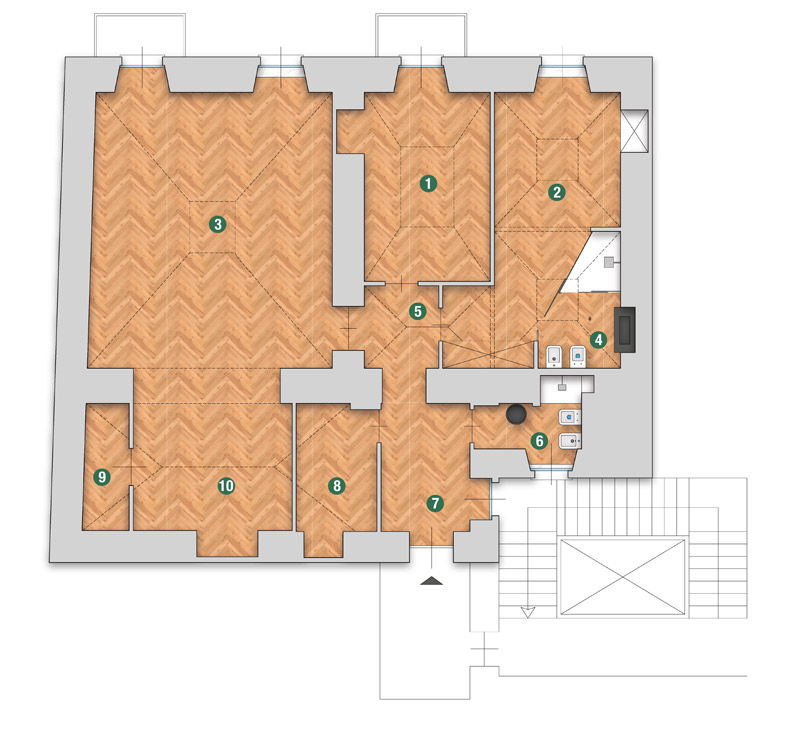 Affrontare la ristrutturazione di un’abitazione d’epoca e riuscire a soddisfare le esigenze di comfort e funzionalità dei giorni nostri rispettandone l’identità storica è sempre una sfida stimolante, ma che va affrontata con una sensibilità particolare. Questo appartamento si trova al terzo piano, quarto fuoriterra, di un edificio ottocentesco in pieno centro storico di Torino e i soffitti alti oltre 4 metri, caratterizzati da ampie volte a padiglione con testate a crociera, hanno assunto fin dal sopralluogo il ruolo principale all’interno del progetto.