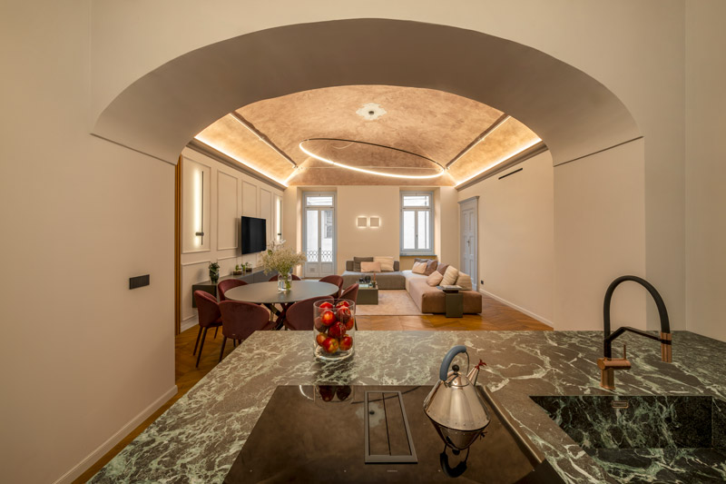 Il fascino dei soffitti a volte guida il progetto di ristrutturazione in un appartamento torinese d’epoca di 150 m2