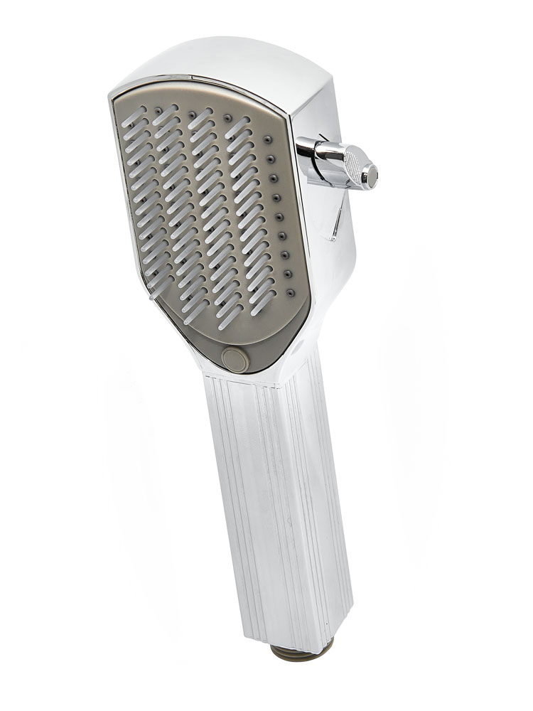 Pratica e robusta, la docciaspazzola MAFALDA è estremamente maneggevole e leggera perché realizzata in plastica ABS cromata. Potrebbe sembrare “tozza” ma è ampia a sufficienza per permettere una presa sicura. La sua impugnatura ergonomica è dotata discanalatureverticaliche garantiscono una facile trattenuta anche con le mani bagnate ed insaponate.