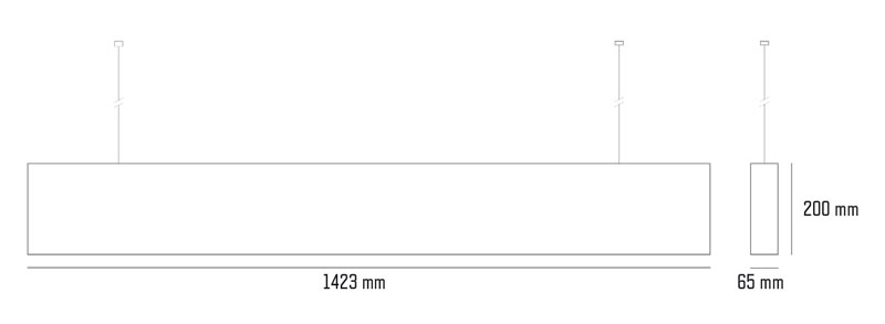 Sospensione lineare disponibile con emissione semplice o doppia, corpo in PMMA in diversi colori, rivestito internamente con una pellicola polimerica personalizzabile in vari colori; spessore 65 mm, disponibile anche in fila continua.