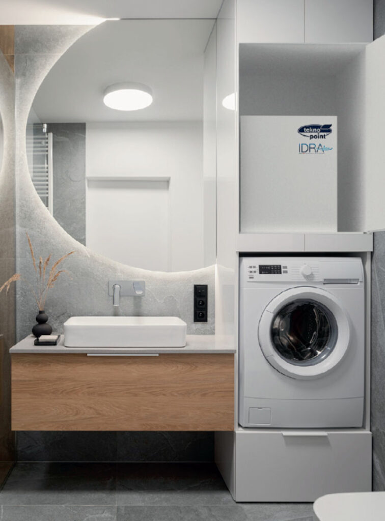 Idra Eco è un sistema di climatizzazione a pompa di calore acqua/aria la cui installazione avviene completamente all’interno, senza alcun elemento visibile all’esterno, in spazi di dimensioni ridotte che permettano di collegarlo all’impianto idrico: sotto il lavello, in bagno o in qualsiasi vano tecnico provvisto di una presa d’acqua e uno scarico.