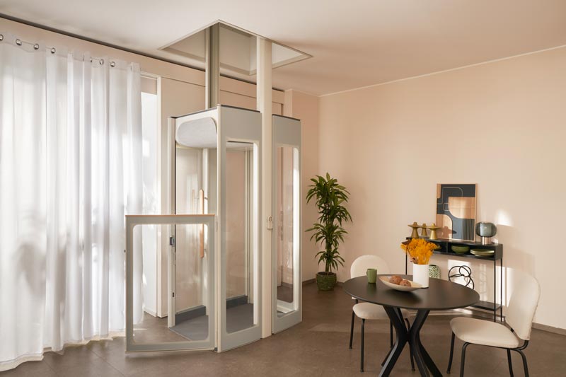 L’integrazione architettonica è un punto chiave. Gli homelift Uplifts sono stati disegnati per essere eleganti e discreti, con guide nascoste che contribuiscono a un profilo visivo leggero. Il comfort è garantito da: