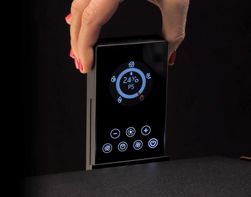 scomparsa, integrato direttamente nel dispositivo, garantisce un accesso immediato, mentre il telecomando opzionale con termostato ambiente permette una regolazione precisa della temperatura.