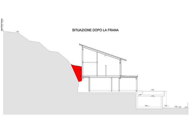 “Ci sono voluti due anni per riparare i danni causati dalla frana e mettere tutto in sicurezza. Ma la tipologia costruttiva della casa, ovvero la prefabbricazione in legno, ha permesso di recuperare la struttura esistente che si è dimostrata molto più resistente di quanto mi sarei mai potuto aspettare.” spiega Mauro Meroni. “Se non si fosse trattato di un edificio prefabbricato in legno ma di una costruzione tradizionale, ad esempio in calcestruzzo, i costi per la riparazione sarebbero stati troppo elevati e non sarebbe stata possibile la ristrutturazione.” sottolinea Mauro Meroni ”Questo ovviamente senza tenere in considerazione l’eventualità – molto probabile – che una casa in calcestruzzo crollasse completamente sotto il peso della frana. Il legno è un materiale flessibile e questa sua peculiarità ha consentito alla casa di rimanere in piedi nonostante il significativo carico.”