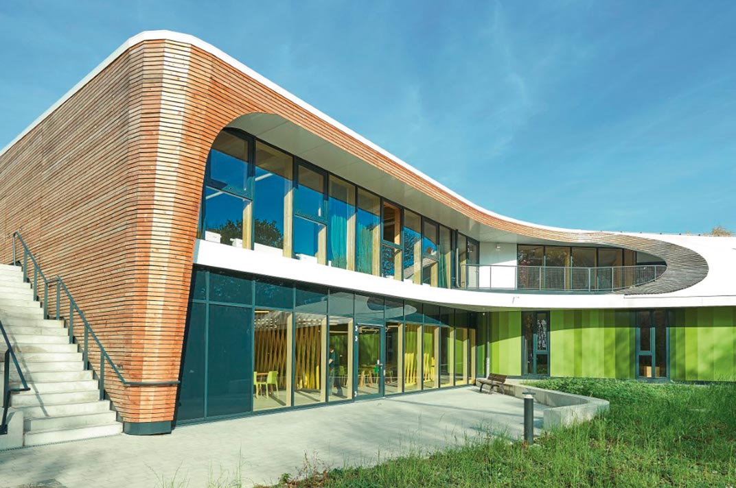 Il nuovo edificio – dalle forme estremamente fluide e particolari – presenta una pianta a “Y”, in cui l’ala lunga e le due più corte si incontrano in un suggestivo spazio centrale su più livelli, che ospita tutte le funzioni comuni. Qui, le eleganti facciate si sviluppano in orizzontale, secondo una maglia regolare intersecata da scale e rampe. Intervallati da zone di relax e relazione, piacevoli percorsi mettono poi in comunicazione gli spazi esterni con gli ambienti collettivi e con le 45 camere.