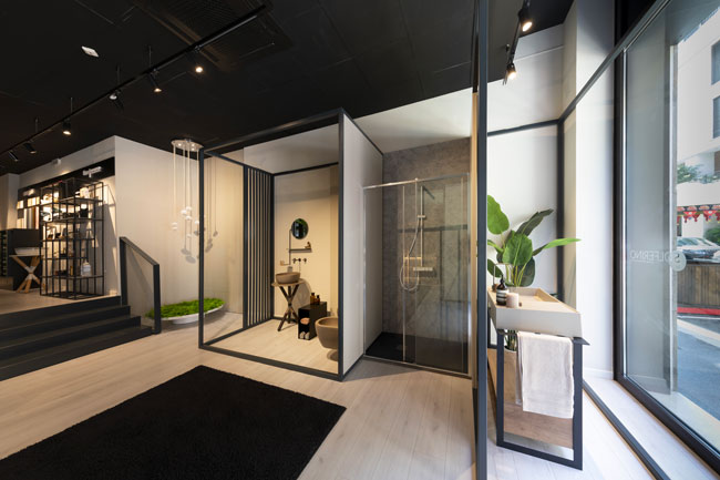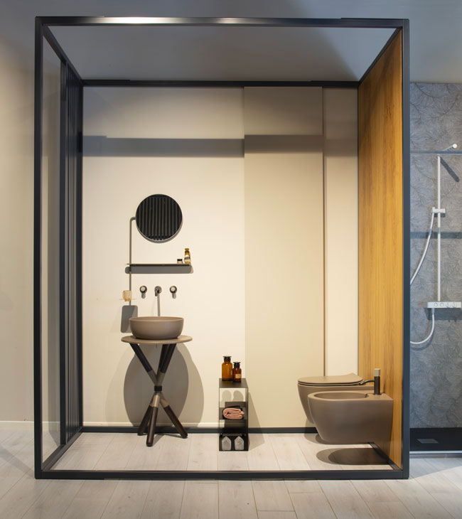 Nelle foto SOLFERINO lab, un esclusivo spazio espositivo nato dalla sinergia creativa tra Fima Carlo Frattini, Megius e Scarabeo, palcoscenico delle nuove tendenze nell’arredo bagno. Il concept allestitivo vede un ambiente fluido, dinamico e funzionale ritmato da quinte che permettono di scandire lo spazio e ottenere zone raccolte.