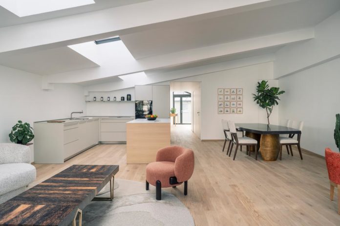 Nell’ambito di un progetto di riqualificazione, lo studio di architettura ACG insieme agli interior designer di Mariebey hanno realizzato un loft sopraelevato con terrazza, dove comfort interno ed esterno coesistono in armonia. Il tutto seguendo una logica che punta a rivitalizzare la città attraverso la creazione di nuovi spazi abitativi collegati all’esistente. Il progetto porta la firma di Oh Perché! Rooftop, marchio che prova a rispondere al problema dell’alta densità urbana, progettando e costruendo grandi aperture e spazi abitativi sui tetti che includano sempre uno spazio verde esterno. Da giugno a dicembre 2020, quando anche la capitale francese era chiamata a fronteggiare l’emergenza sanitaria, lo studio ACG e l’agenzia Mariebey hanno creato da zero questo appartamento di 113 mq circondato da terrazze verdi.