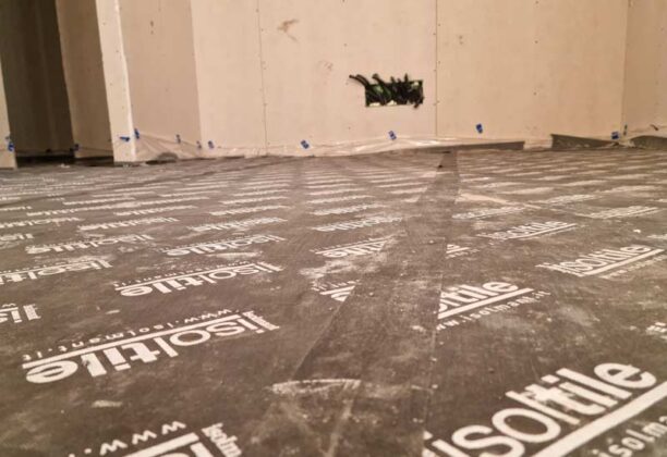 Lo strato acustico ultrasottile IsolTile di Isolmant è il componente fondamentale per l’attenuazione del rumore da calpestio nella posa di pavimenti radianti a basso spessore