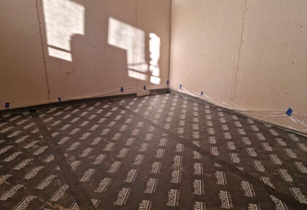 Isolmant IsolTile è un materassino acustico resiliente elastodinamico studiato appositamente per queste applicazioni: ha uno spessore di soli 2 mm e costituisce uno strato armante e desolidarizzante in grado di ridurre in modo significativo il rumore da calpestio e quello da impatto, anche in presenza di masse esigue. Il prodotto è disponibile in tre versioni: IsolTile Classic, per applicazioni sottomassetto o sottopavimento; IsolTile BV, per applicazioni sottomassetto o sottopavimento quando il prodotto deve svolgere anche la funzione di barriera al vapore; IsolTile AD per applicazioni sotto pavimenti posati sull’esistente, con strato adesivo di posizionamento. IsolTile Classic e IsolTile BV sono idonei alla posa su riscaldamento radiante; con queste due versioni di IsolTile, Isolmant è in grado di offrire soluzioni compatibili con sistemi a bassissimo spessore garantendo efficienza, durevolezza e sostenibilità, con proposte customizzate e certificate per ottenere l’efficienza complessiva del sistema. Partner nella gestione di questo cantiere sono Uponor e Knauf, per la fornitura rispettivamente del sistema di riscaldamento a pavimento e del massetto di copertura dello stesso.