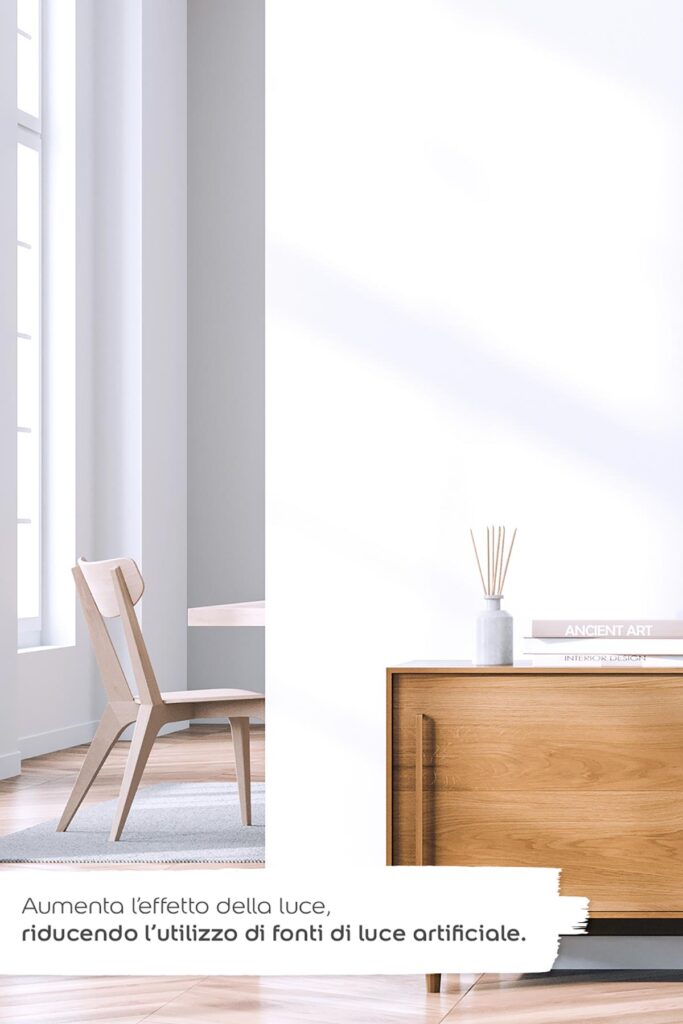 L’elevato potere riflettente consente di migliorare la distribuzione della luce esistente, limitando il ricorso a sorgenti artificiali aggiuntive nelle ore diurne.