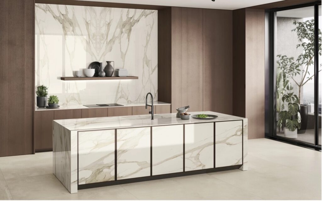 Per l’ambito residenziale, Atlas Plan propone una gamma di superfici in gres porcellanato in grande formato sviluppate per cucine, living e bagni. L’attenzione al dettaglio grafico e la disponibilità di spessori e finiture specifiche consentono piani di lavoro, backsplash, isole a taglio monolitico e rivestimenti continui coordinati all’interno dello stesso progetto. Il ventaglio di soluzioni agevola la coerenza tra elementi orizzontali e verticali, semplificando capitolati e interfacce di cantiere.