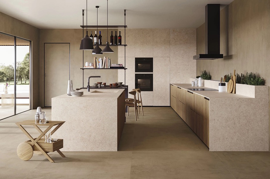 - Effetti pietra e cemento a poro fine per cucine e passaggi.